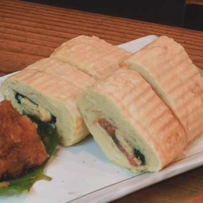 定番の出汁巻き明太に大葉を挟んでしそ明太にしてみた!